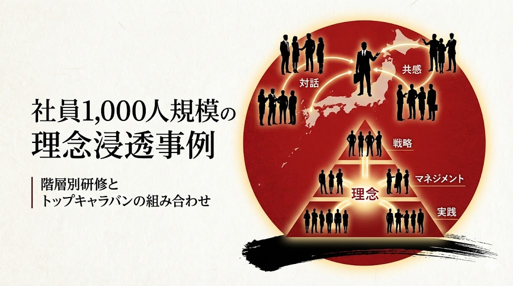 社員1,000人規模の理念浸透事例|階層別研修とトップキャラバンの組み合わせ