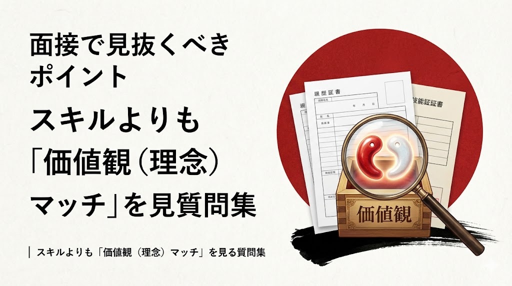 Home » 経営コラム » 採用 » 面接で見抜くべきポイント|スキルよりも「価値観(理念)マッチ」を見る質問集