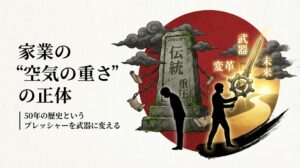 家業を引き継ぐアトツギ(後継者)にとって、経営とは知識や技術を競う場である以上に、孤独な自分自身との戦いの場でもあります。周囲には先代からの古参社員、家庭には絶対的な存在である先代社長。どこを見渡しても自分の弱音を吐ける場所はなく、常に強いリーダーを演じ続けなければならない。この過酷な孤独を解消し、変革のエンジンを加速させるために必要なのが外部のコンサルタントですが、ここで最も重要になるのはコンサルタントの知名度や実績ではなく、経営者との相性です。 結論から申し上げます。アトツギ経営者が本当に必要としているのは、正解を教えてくれる先生ではなく、経営者の孤独を理解し、泥臭い悩みまで腹を割って話せる参謀という名のパートナーです。相性の合わないコンサルタントは、論理的な正論で経営者を追い詰め、さらなる孤独を生み出すことすらあります。 本記事では、アトツギ経営者が理想のパートナーを見極めるための視点と、なぜ相性がすべての成否を分けるのかについて詳しく解説します。 履歴書や実績だけでは測れない相性の正体 コンサルタントを選ぶ際、多くの経営者は出身大学や過去の支援実績、所属する会社のブランド力に目を奪われます。しかし、それらはあくまで基礎体力に過ぎません。アトツギ経営という特殊な環境において、真に機能するのは、経営者の心の機微に寄り添える人間性です。 相性の正体とは、言語化しにくい感覚的な一致だけではありません。それは、経営者が自身の未熟さや不安をさらけ出したとき、それを否定せずに受け止め、共に解決策を探ろうとする姿勢の有無を指します。ロジックだけで武装したコンサルタントは、経営者の悩みに対して効率的な解を提示しますが、そこには感情への配慮が欠けていることが多々あります。 アトツギ経営者は、論理的に正しいことは百も承知で、それでも動けない感情の葛藤を抱えています。その葛藤を無視した提案は、どんなに優れていても現場には浸透せず、経営者の心も動きません。自分と同じ温度感で未来を語り、時には共に悩み抜いてくれる。そんな泥臭い関係性が築けるかどうかが、相性の本質です。 アトツギ経営者特有の孤独と外部パートナーの役割 なぜ、アトツギ経営者にはこれほどまでに相性を重視したパートナーが必要なのでしょうか。それは、彼らが置かれている立場が極めて複雑だからです。 社内での孤立と見えない抵抗 アトツギが新しいことを始めようとすれば、必ずと言っていいほど古参社員からの抵抗に遭います。彼らにとってアトツギは、いつまでも子供であり、自分たちの成功体験を壊しに来る異分子のように見えることもあります。社内に相談相手がいないアトツギは、自分の判断が正しいのか確信が持てず、常に不安と戦っています。 先代という巨大な影 先代社長が存命、あるいは現役である場合、その存在は心強い支えであると同時に、最大の重圧となります。経営方針の食い違いはそのまま親子の感情的な対立に発展しやすく、理屈で解決できない根深い問題を生み出します。 こうした多層的なストレスの中にいるアトツギにとって、外部パートナーは単なる知識の供給源ではありません。自分の思考を整理するための鏡であり、感情をデトックスするための安全地帯であるべきです。腹を割って話せるパートナーがいるだけで、思考の解像度は劇的に上がり、決断のスピードは加速します。 理想的なパートナーが備えている三つの特徴 相性の良いパートナー、すなわちアトツギの参謀になれる人物には、共通する特徴があります。 第一の特徴は、高い共感力と傾聴力です。 彼らは自分の知識をひけらかす前に、徹底的に経営者の話を聴きます。経営者が何を恐れ、何を大切にし、どのような未来を描きたいのか。言葉の裏にある真意を汲み取ろうとする姿勢があります。経営者が「この人なら自分の本当の想いを分かってくれる」と感じられるかどうかが、信頼関係のスタートラインです。 第二の特徴は、先代や伝統への深い敬意です。 改革を急ぐあまり、過去を否定するコンサルタントは老舗企業には向きません。優れたパートナーは、先代が築き上げてきた歴史や文化をリスペクトし、その文脈を理解した上で、新しい時代の風を吹き込もうとします。先代とアトツギの橋渡し役を担えるだけの度量とバランス感覚を備えていることが、円滑な承継を支えます。 第三の特徴は、当事者意識を持った伴走の姿勢です。 「アドバイスをしたので、あとは頑張ってください」というスタンスではなく、「私たちでこれを成し遂げましょう」と語る人物です。経営者と共に汗をかき、現場の泥臭い課題にまで首を突っ込むことを厭わない。その覚悟が伝わってくるからこそ、経営者は腹を割って話せるようになります。 相性を見極めるための実践的なチェックポイント コンサルタントとの最初の面談において、単なる能力確認ではなく、